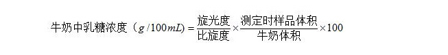 取50mL牛奶樣品于100mL容量瓶中,加乙酸鉛和亞鐵氰化鉀溶液、冰乙酸各2mL,搖勻后靜置30min,用干燥濾紙過濾,棄去初濾液,測定其旋光度,記錄數(shù)據(jù)。